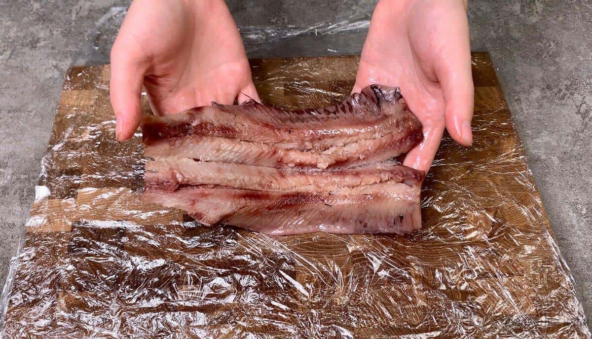 Можна використовувати вже готові слабосолені філе, але з цілим оселедцем працювати мені подобається більше.