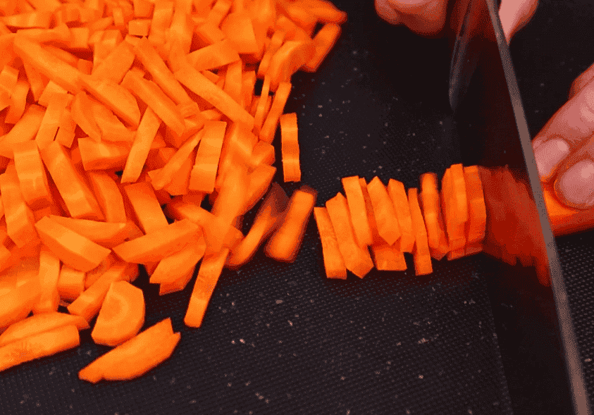 А моркву наріжемо соломкою, як перець. Вагу моркви в інгредієнтах вказую в чистому вигляді.