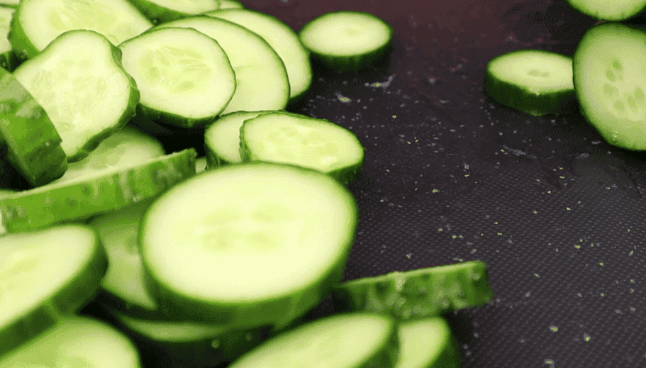 Спочатку підготуємо та наріжемо всі овочі. Огірки кільцями.