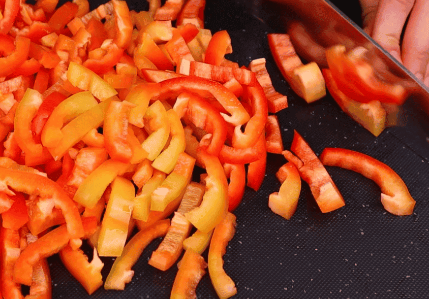 Солодкий перець (болгарський або ласточка, як у мене) очистимо і наріжемо соломкою.