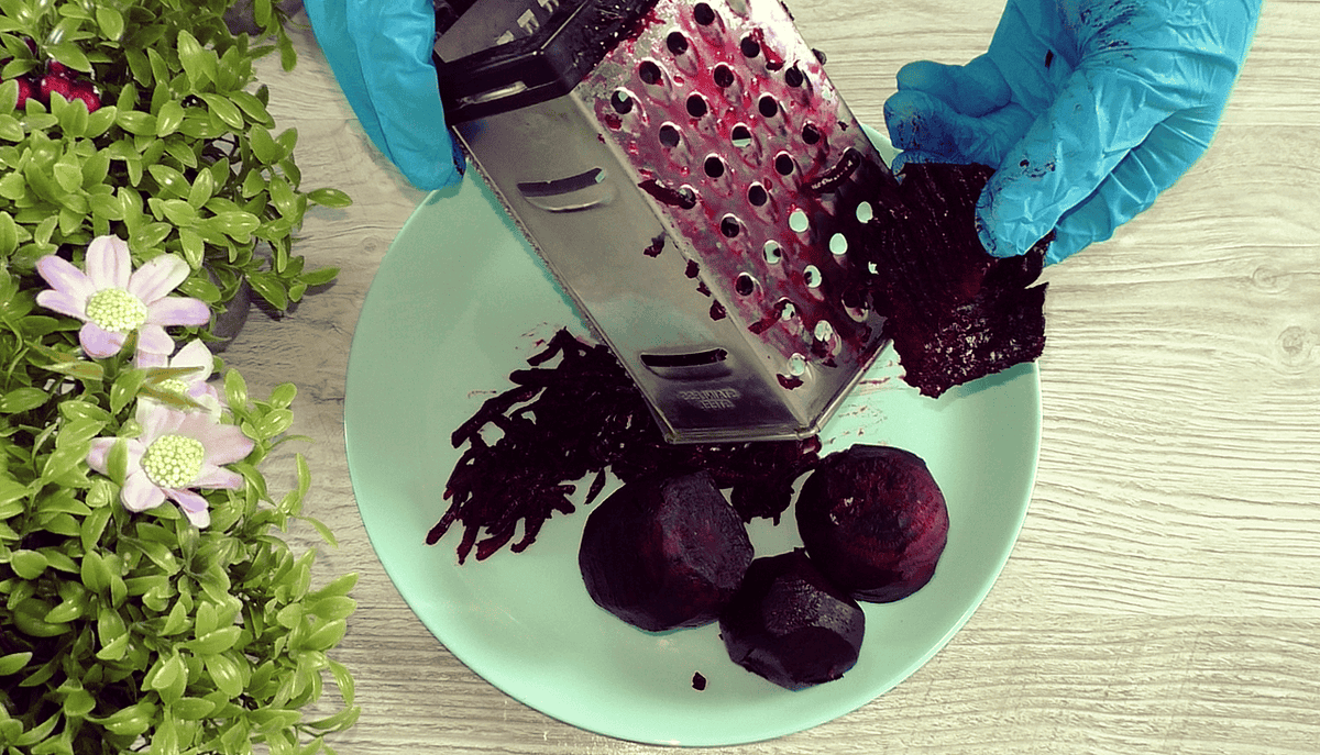 Зверху буряк і сіточка майонезу. Овочі можна натирати хоч на дрібній, хоч на великій терці. Готуйте так, як подобається Вам.