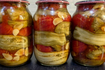 9. Накриваємо стерилізованими кришками та закручуємо. Салат “Сніданок туриста” на зиму готовий!