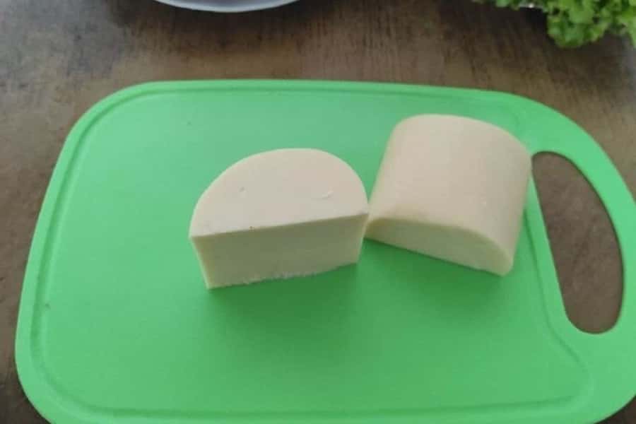 4. Сир поділити на дві рівні частини.