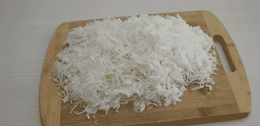 Капусту шаткуємо тонкою соломкою.