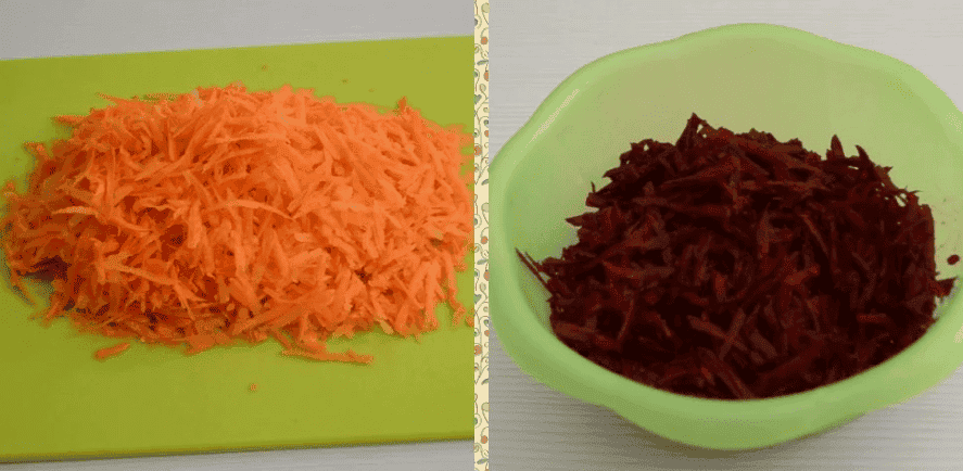 Моркву та буряк натираємо на великій тертці.
