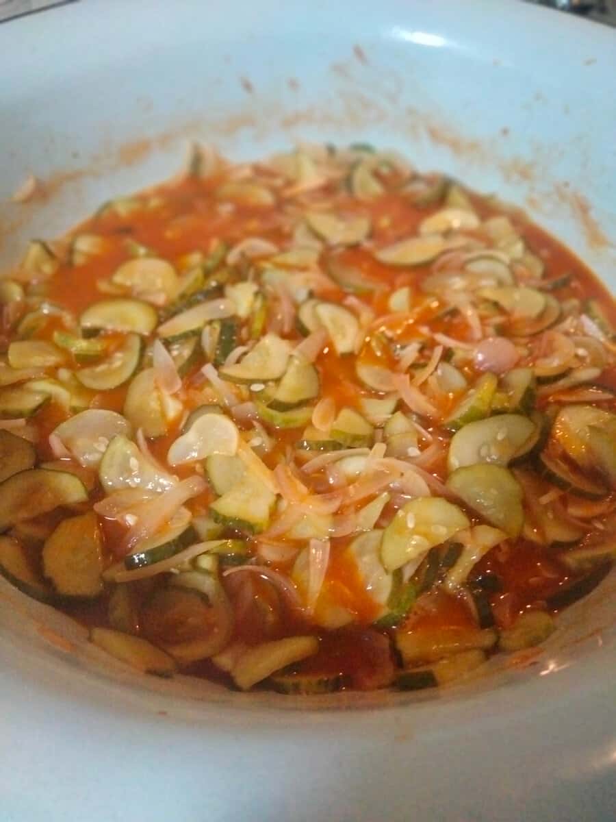 Коли добре закипить, всипаю туди подрібнений часник, цибулю і огірки. Все перемішую і залишаю варитися на невеликому вогні приблизно на 20 хвилин.