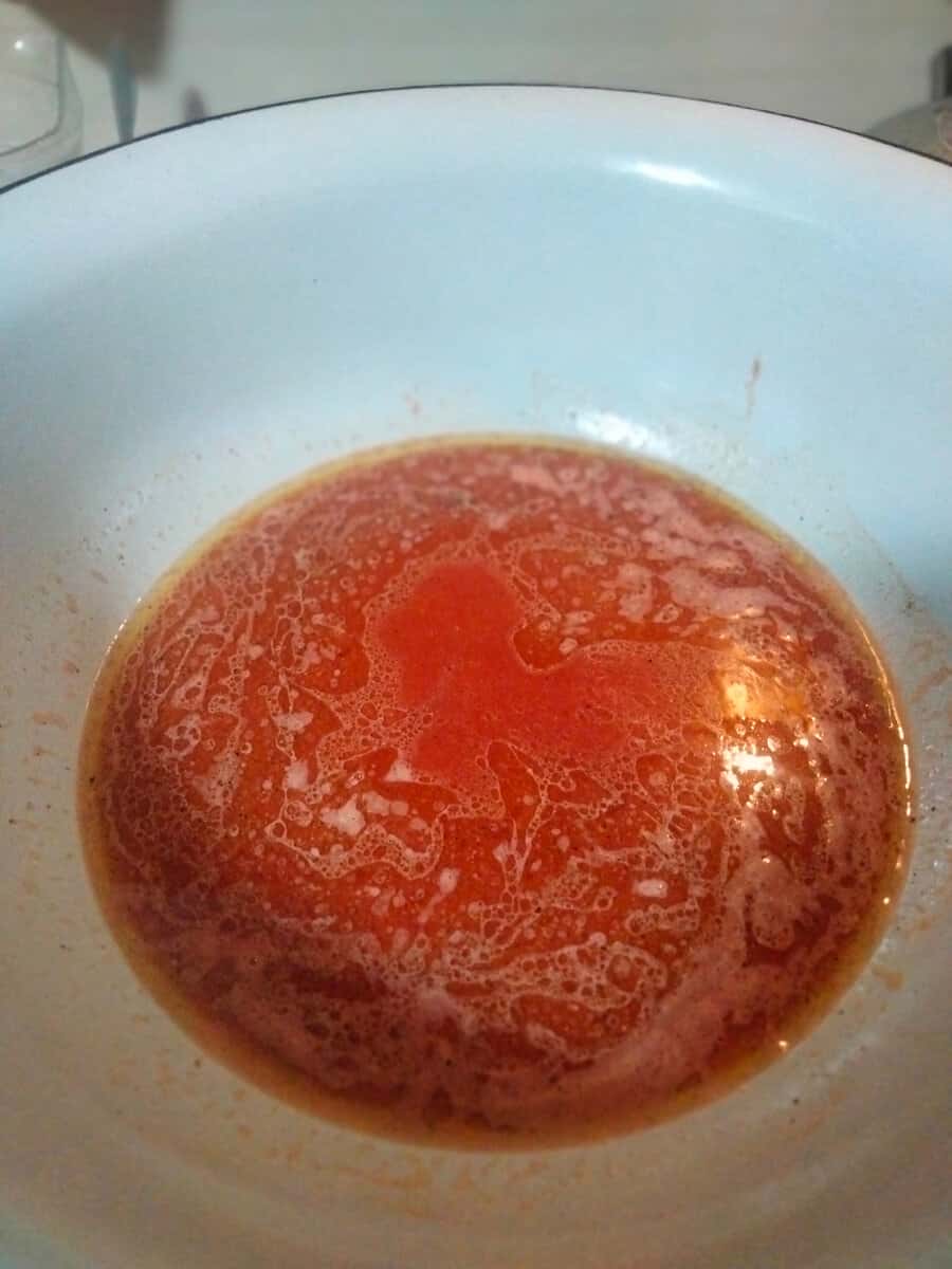 У таз, а варю я зазвичай в емальованому тазу, вливаю близько 700 мл води, туди ж додаю упаковку кетчупу. Кетчуп у мене самий звичайний, в пакеті 350 г, ось весь туди і вичавила.