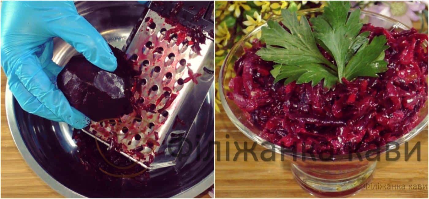 Відварний буряк натерти на великій терці.