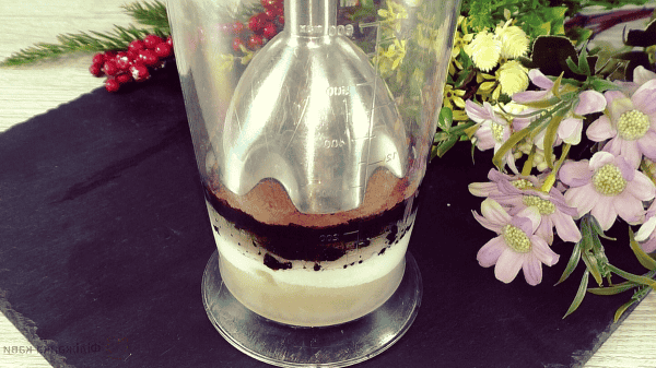Додати какао, я додаю 2 десертні ложки. Кількість какао за Вашим смаком від 1 до 2 столових ложок на дану кількість інгредієнтів.