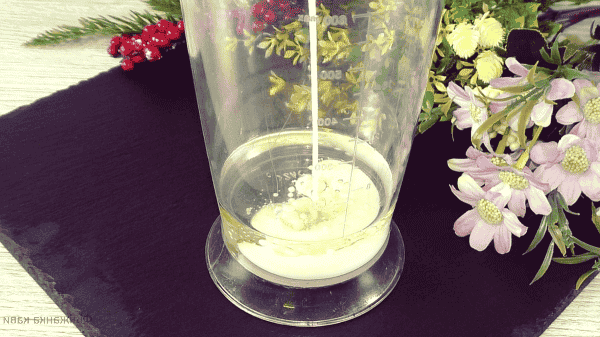 Беремо погружний блендер, включаємо, маса відразу починає густіти. Технологія приготування ( як домашній майонез ).