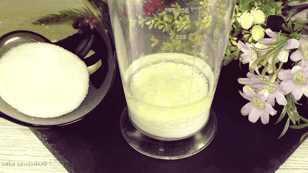 Тепер додати цукор, цукор бажано брати дрібного помелу. Краще, якщо є, використовуйте цукрову пудру.