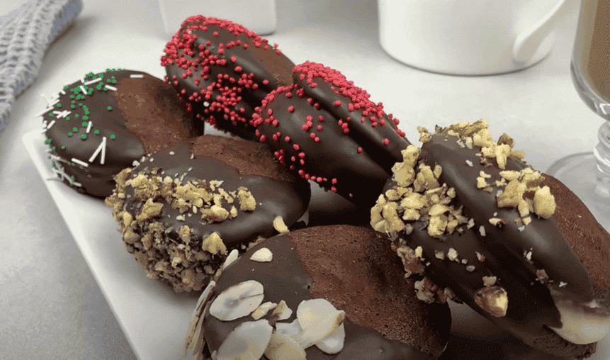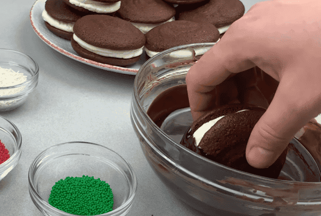 Охололе печиво опускаємо в шоколадну глазур, а потім на прикрасу.