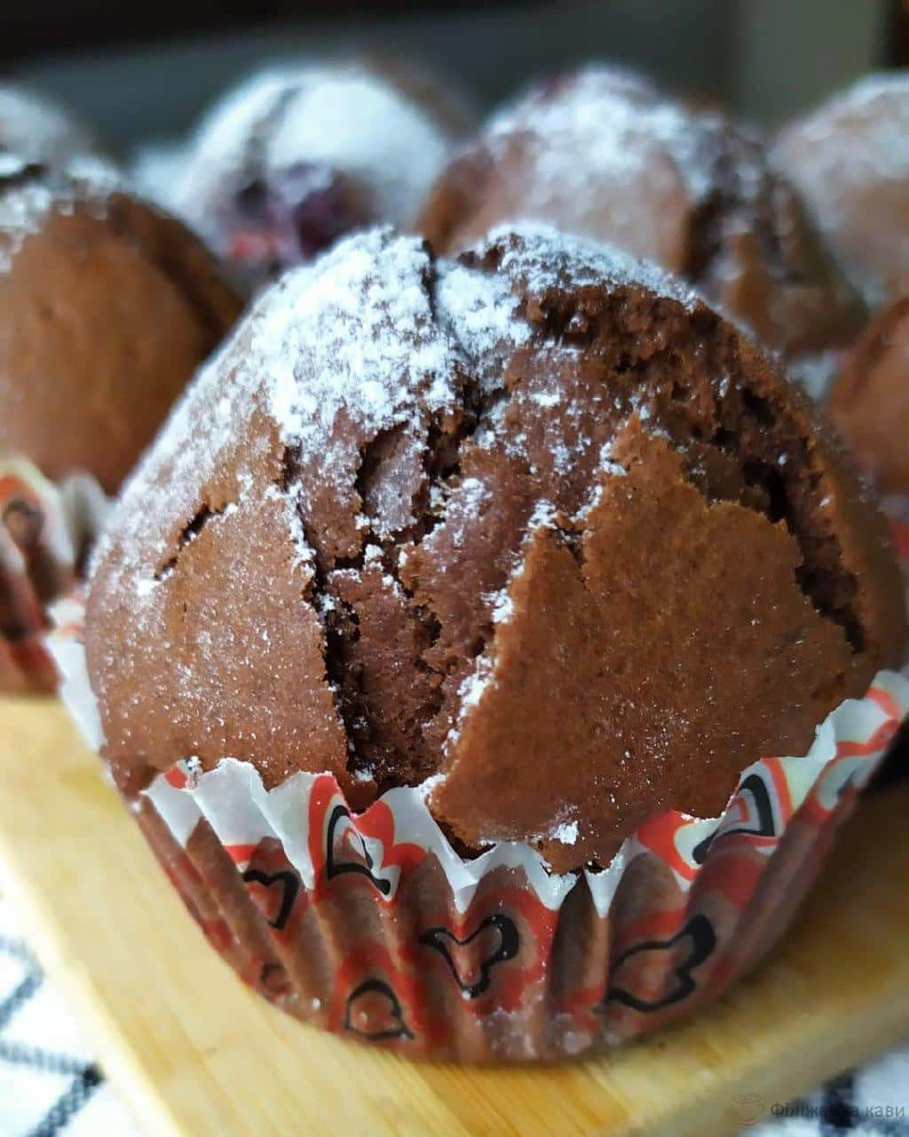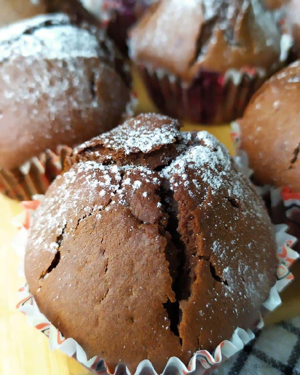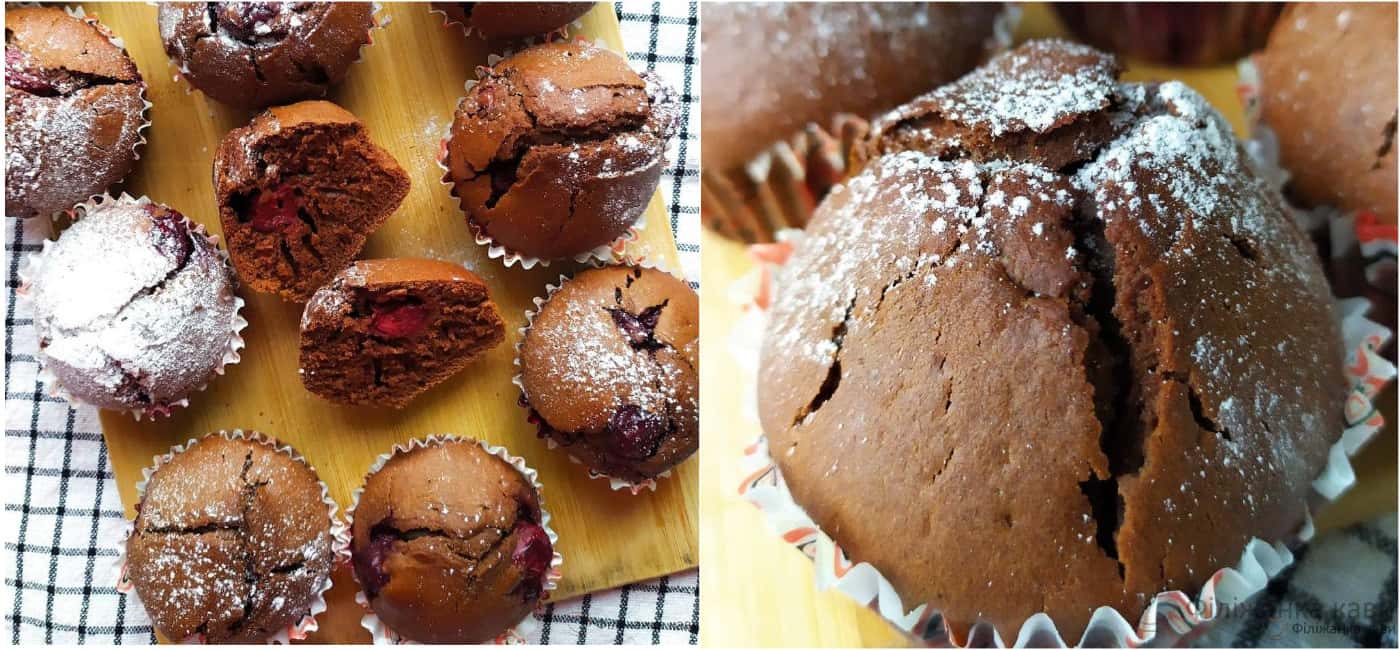 Шоколадні кекси з вишнею 🍒- одна з улюблених випічок моєї сім’ї і дуже частий гість на нашому столі. Рецепт простий і вдалий, а кекси ніжні і смачні.