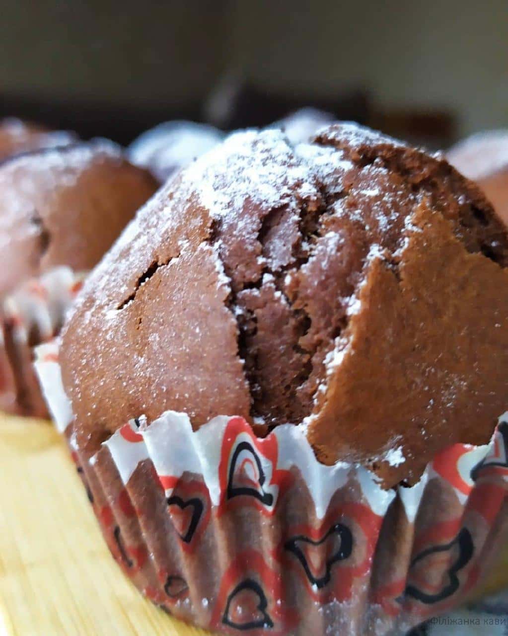 6. Тісто розкласти формочками і відправити в розігріту до 180 градусів духовку на 30 хвилин. Цього тіста вистачає на 12 кексів.