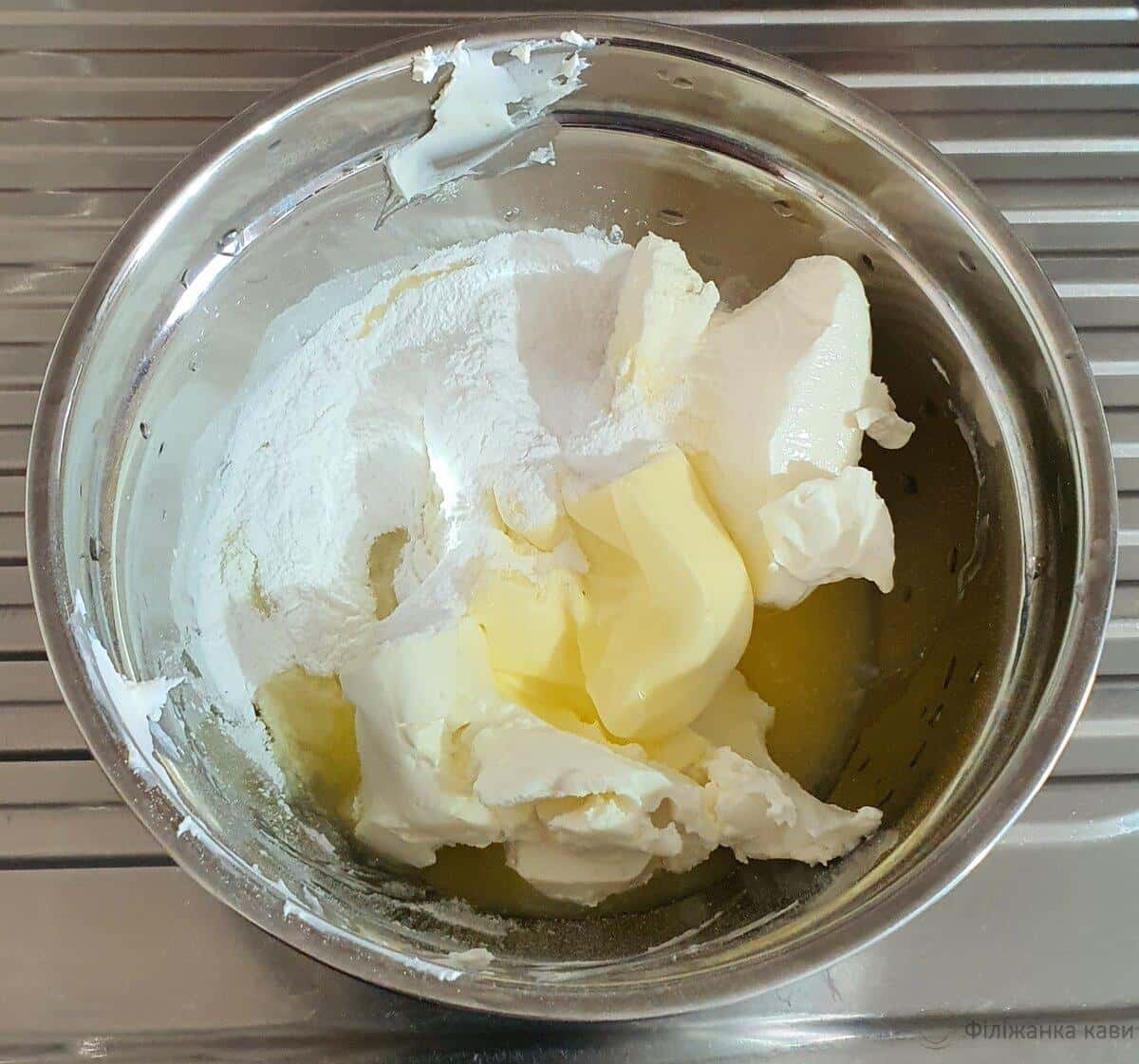 Ретельно змішуємо. Для повітряності рекомендую збити масу погружним блендером протягом пари хвилин або ж міксером, якщо сир м’якої текстури.