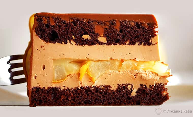 Трюфельні сметанні коржі, які ідеально поєднуються з шоколадним сметанним кремом і ароматною грушевою начинкою, а блискуча і смачна глазур робить цей торт особливим.
