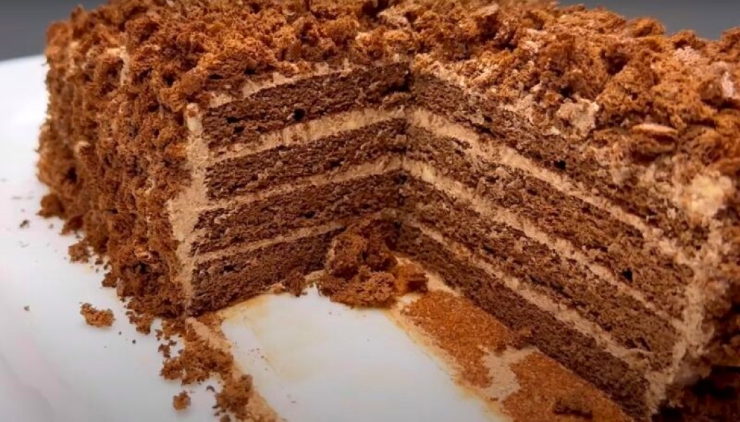 Залишки від коржа подрібнюємо у дрібну крихту.