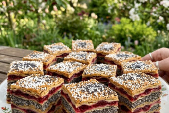 Я розрізала на 10 великих шматочків, можна на 12 або навіть 20 невеликих тістечок.