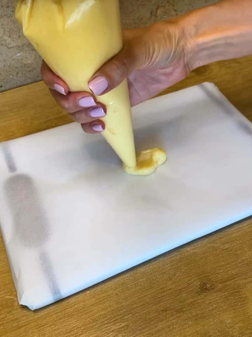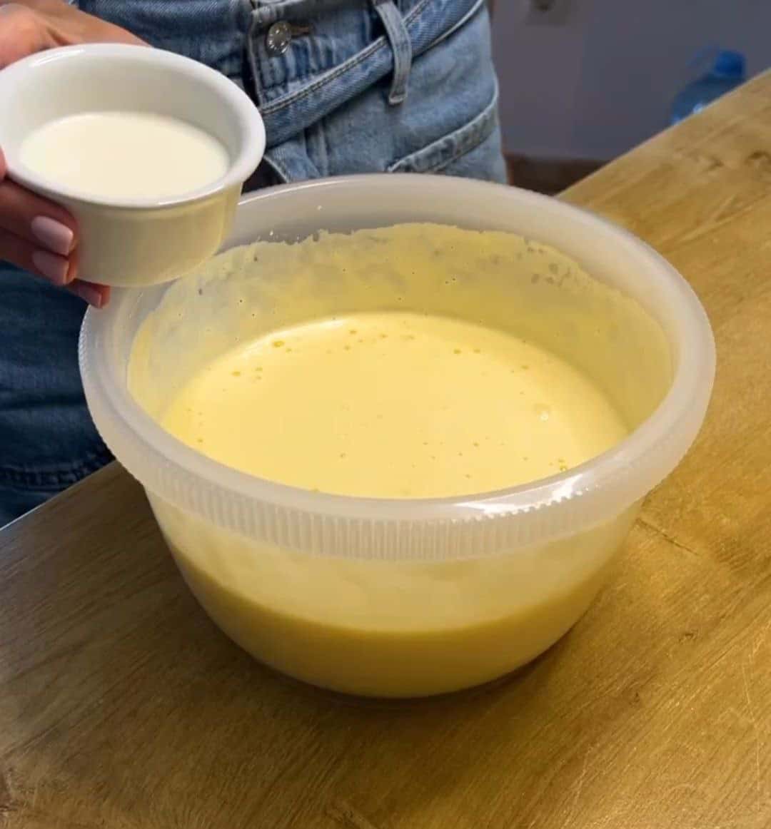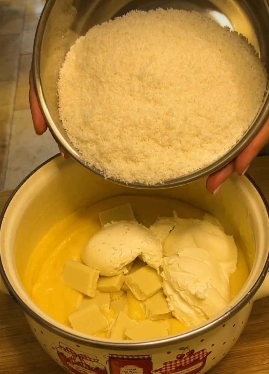 🟢Жовтки розтираємо з цукром, додаємо крохмаль, змішуємо.
