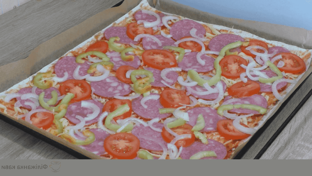 Піца виходить неймовірно смачна, з хрумким тістом та соковитою начинкою. Обов’язково рекомендую приготувати.