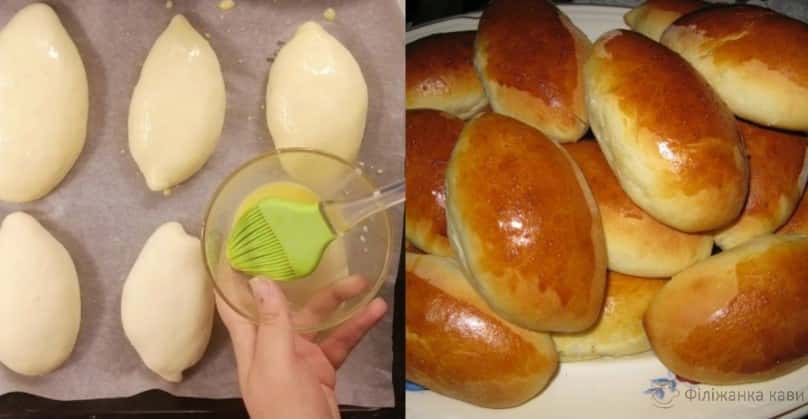 За бажання перед випіканням можете змастити пиріжки жовтком і присипати штрейзелем. Саме такі пиріжки подавали у моїй шкільній їдальні. З гарячим какао це був найкращий перекус на перерві.