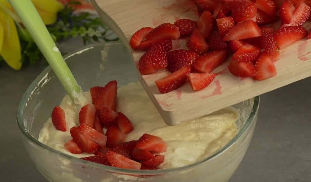 Додаємо фрукти або ягоди. З полуницею виходить просто чудово!