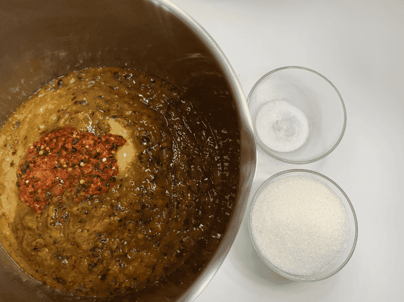 Аджика вже через 15 хвилин приготування починає набувати насичений червоний колір.