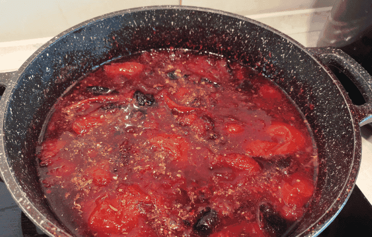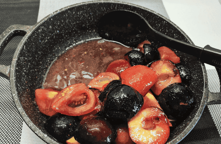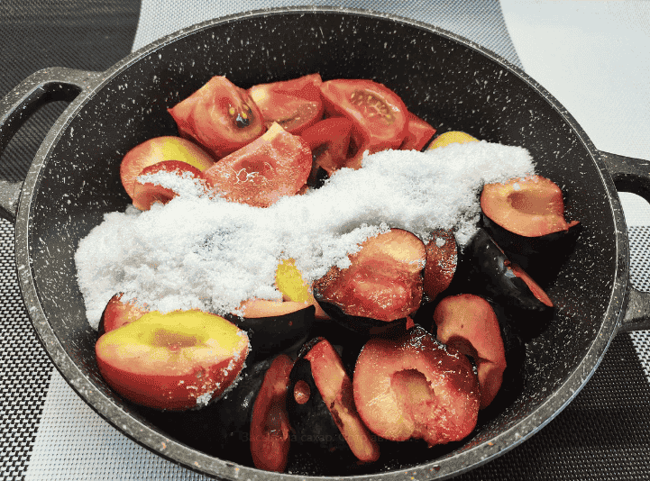 ✅Слива трохи постоїть за кімнатної температури і дає сік. Можна починати уварювати.
