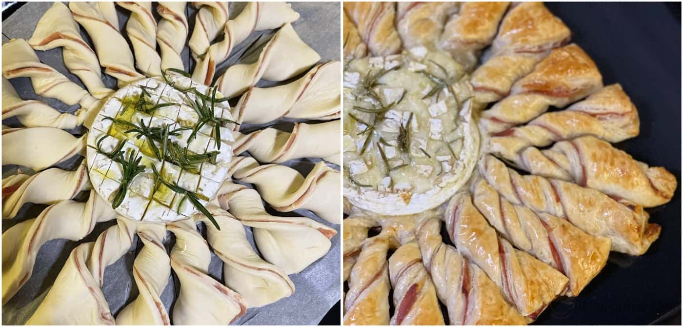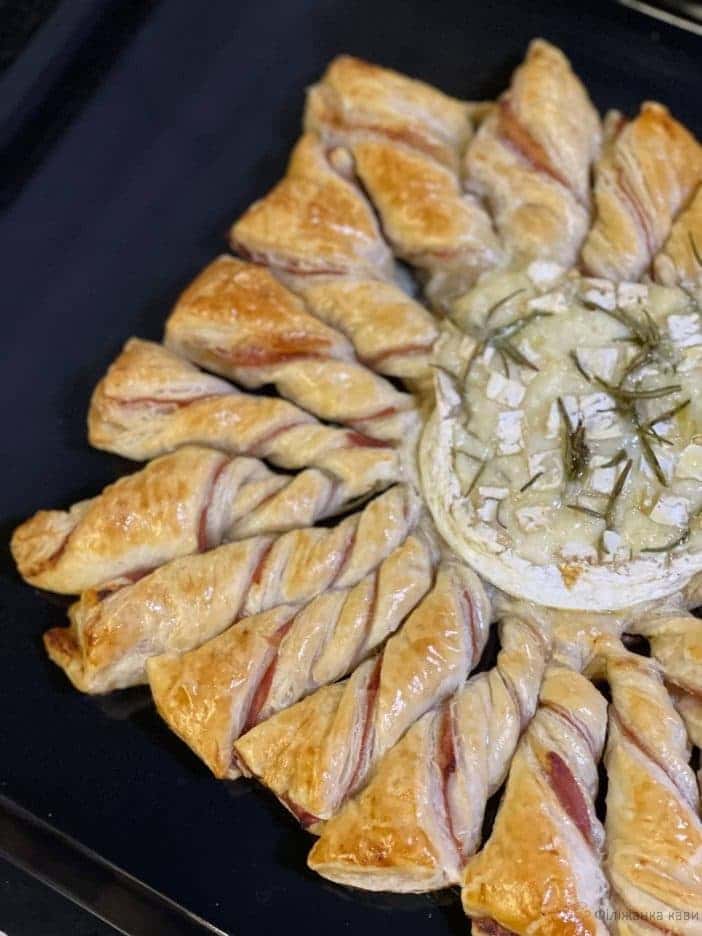 Смачна, швидка, цікава закуска. Запечений камамбер дуже гарно буде виглядати на круглому тісті.