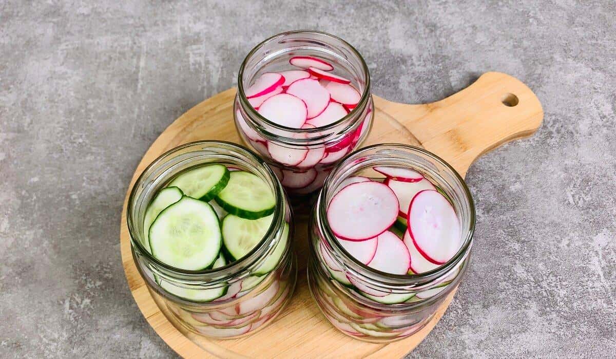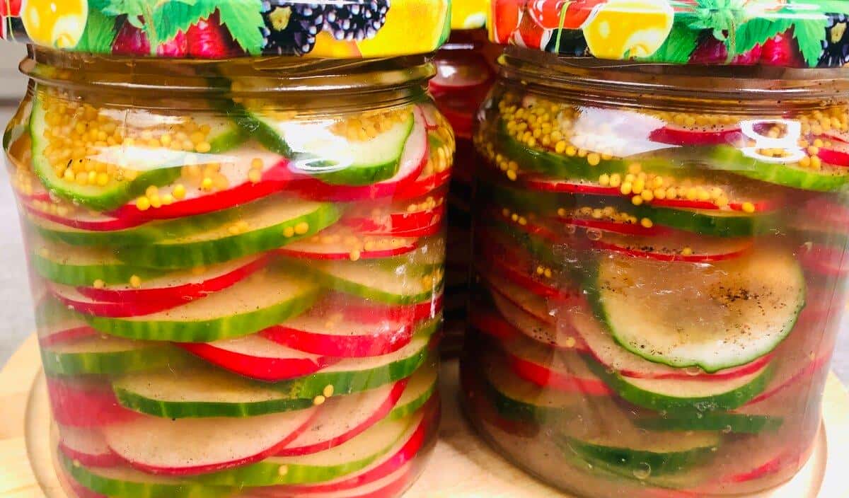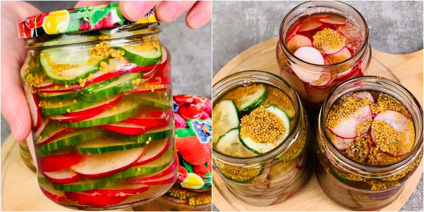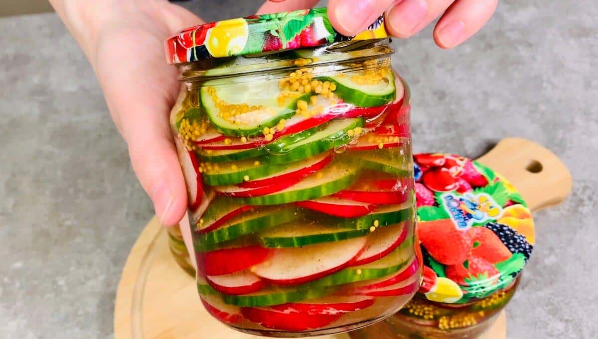 Приготуємо мариновану закуску з редиски і огірків. Готується просто, укладаємо в банки, заливаємо маринадом і через день вже подаємо до столу! Готуємо найпростішу сезонну закуску з редиски і огірків! Дуже люблю таку закуску, готується швидко і просто, буде потрібно не більше 20 хвилин. Роблю відразу банки 3 – 4, і весь місяць із задоволенням їмо.