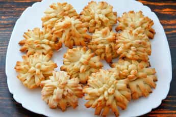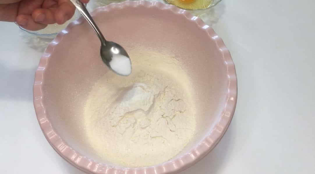 У миску просіюємо 300 г борошна, додаємо 1/3 ч. л. солі, розмішуємо.