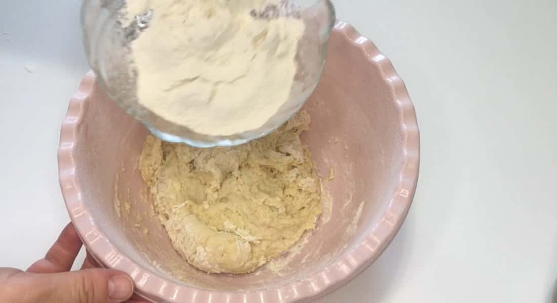 У процесі замісу я додала ще 40 г борошна, борошно додаємо поступово, щоб не забити тісто.
