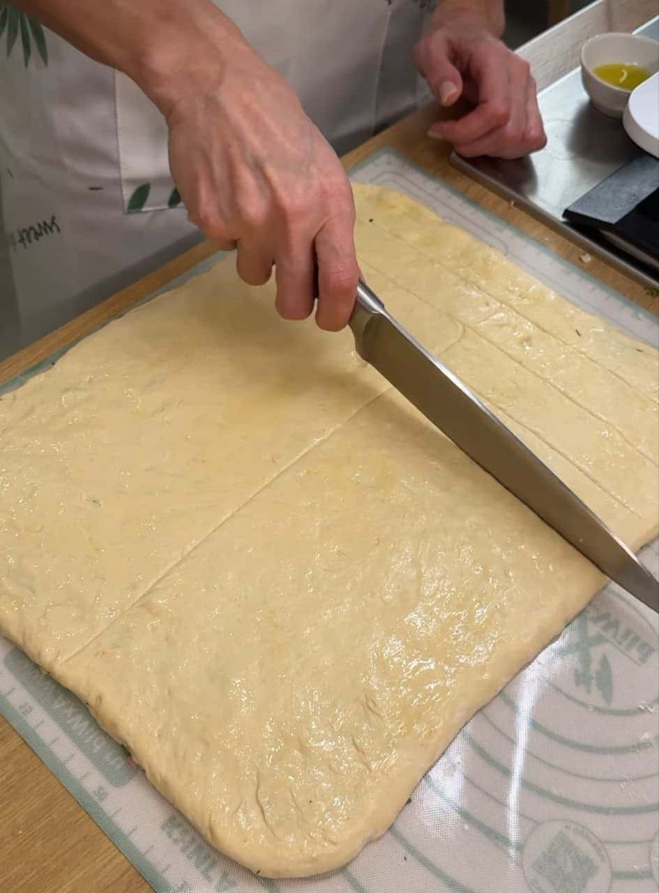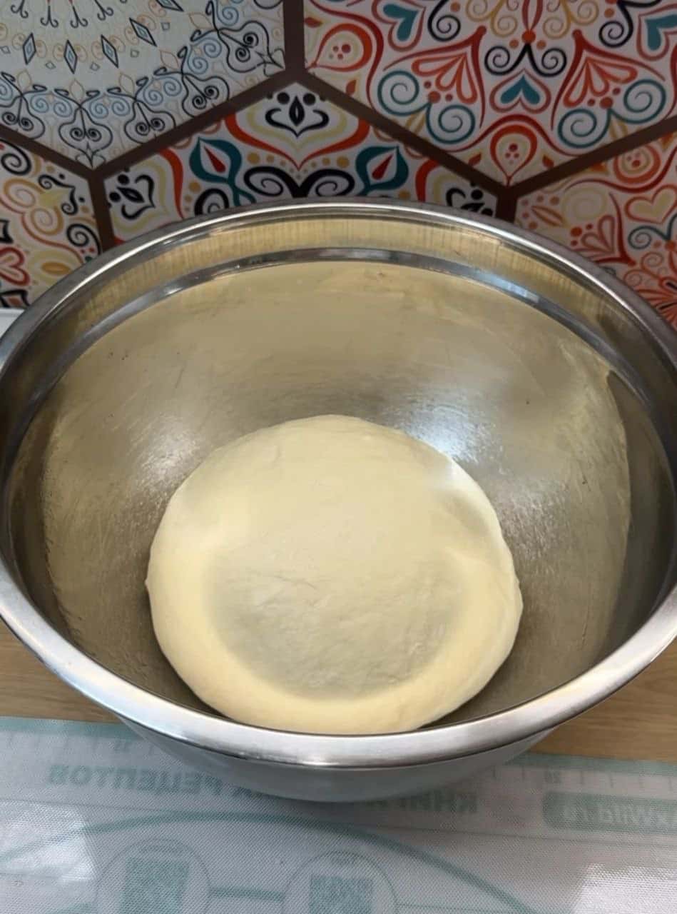 Добавляємо сіль, змішуємо, олію замішуємо тісто.