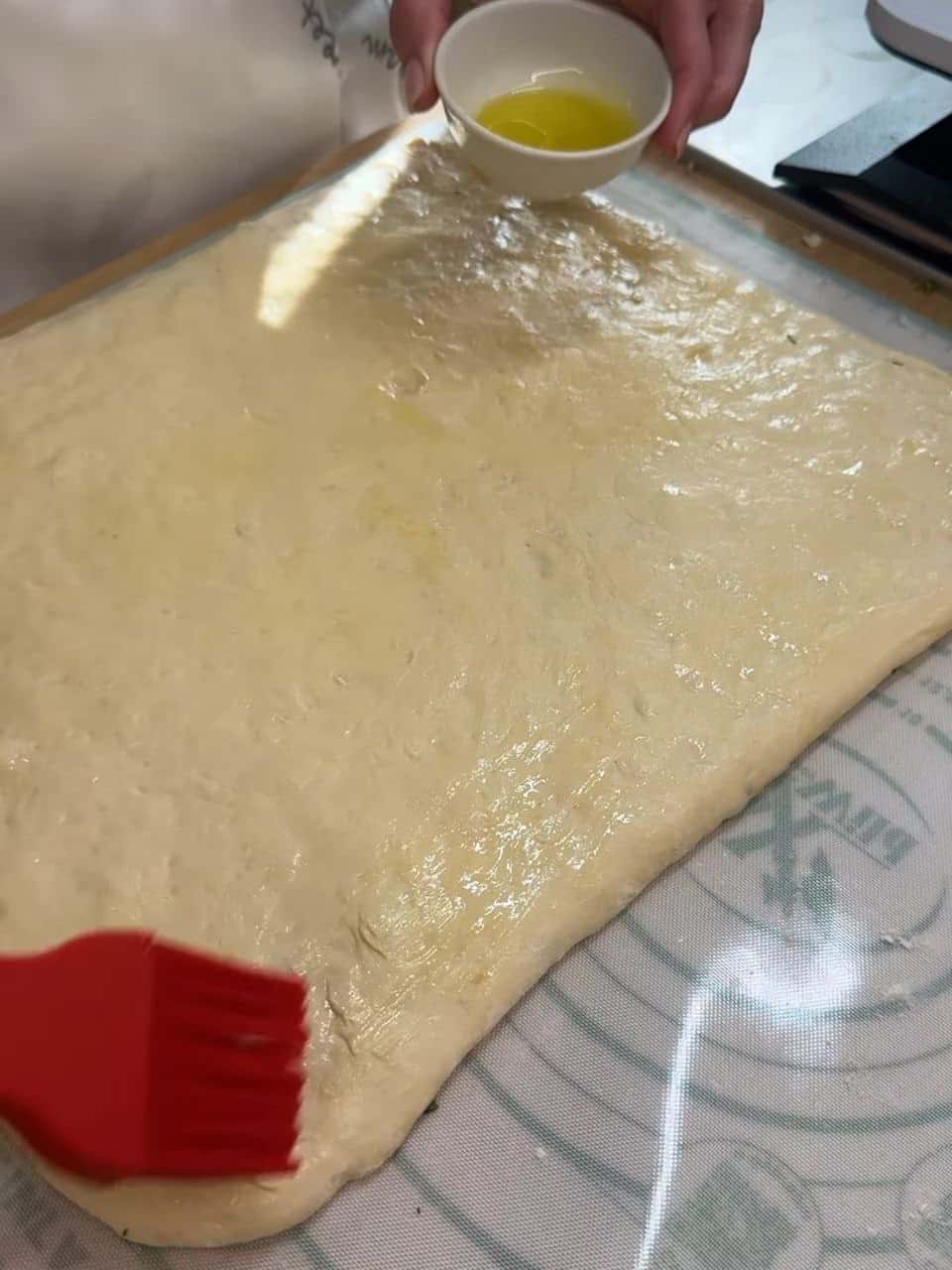 Накриваємо другою частиною тіста, защипуємо краї, змащуємо злегка олією,