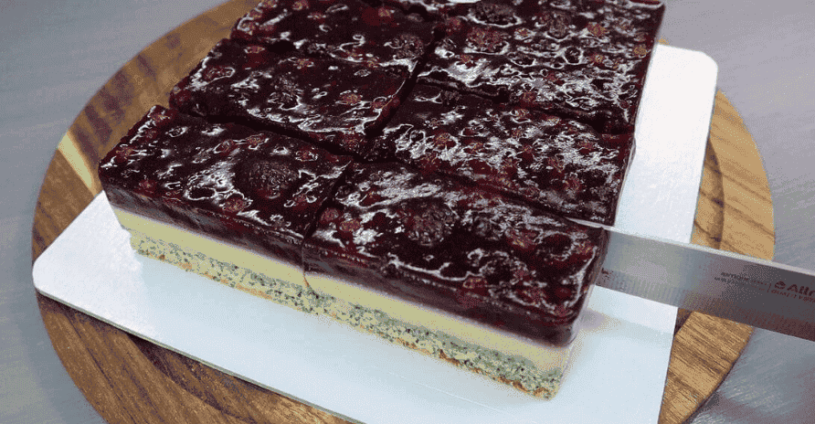 Маковий корж поміщаємо на дно форми 16х16 см, боки форми краще застелити тефлоновим килимком чи пергаментом.