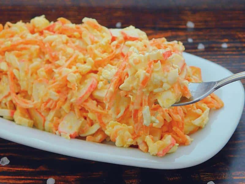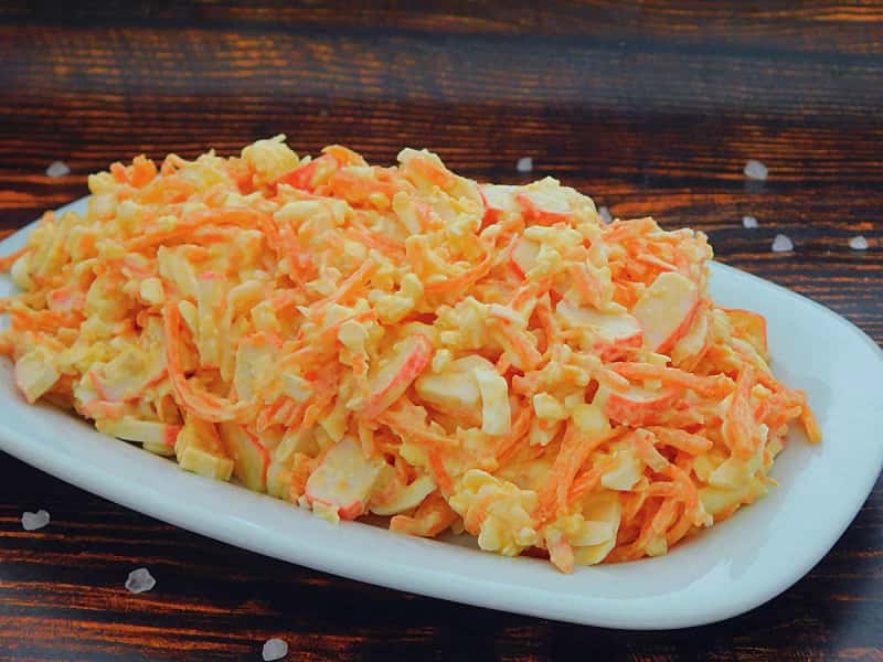 Салат із моркви готовий. Просочення він не потребує, тому подавати можна відразу ж. Ось такий простий рецепт.