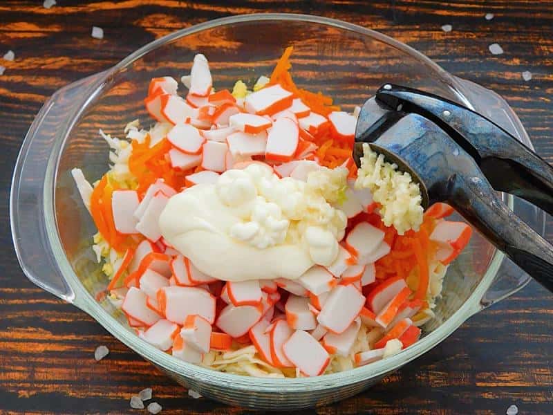 - Крабові палички нарізати шматочками чи соломкою.