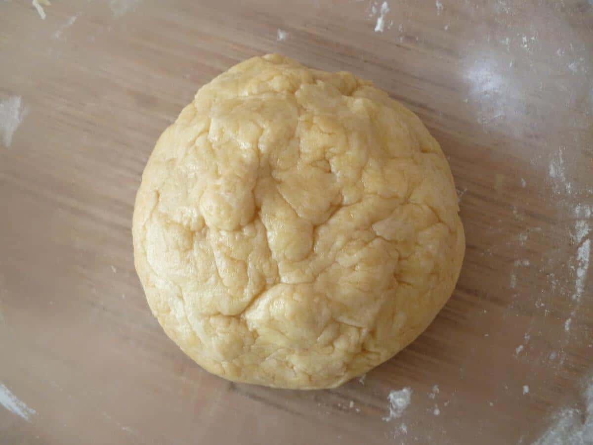 Для тіста змішуємо масло з борошном, перетираємо в дрібну крихту, додаємо розпушувач і сіль. Кладемо майонез і сметану, швидко замішуємо м’яке тісто. Просто збираємо його в кулю. Відправляємо в холодильник, поки готується начинка.