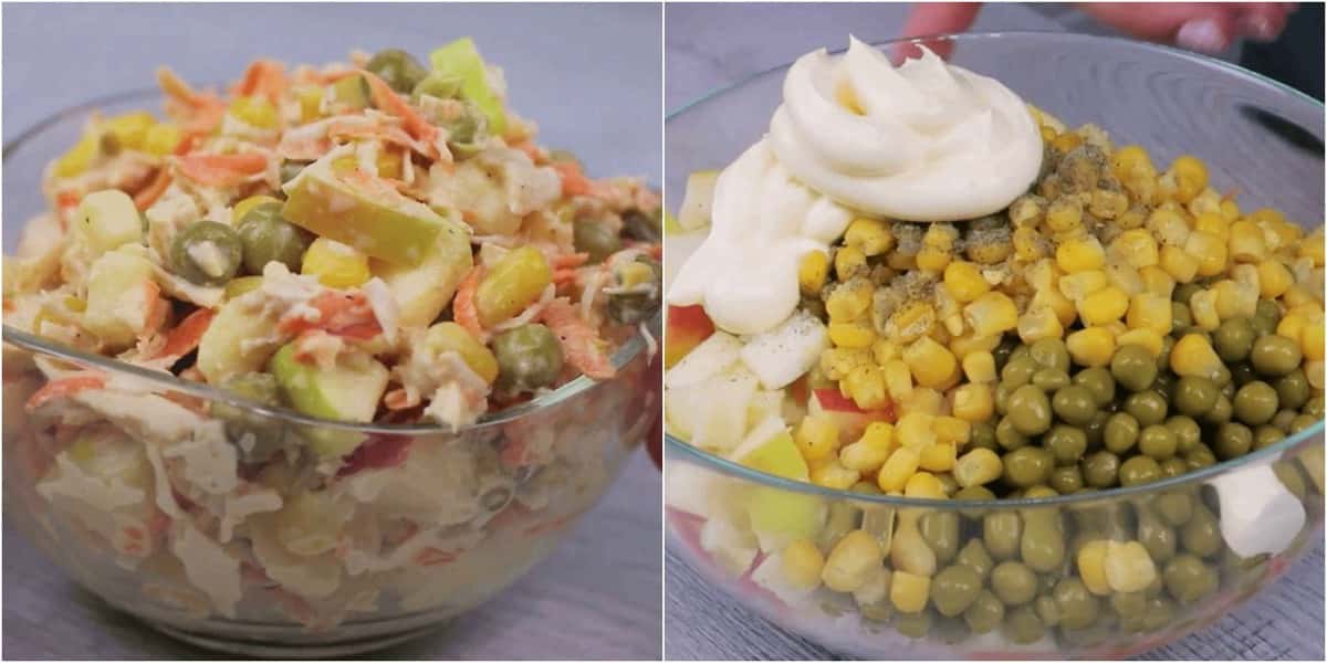 - Солимо, перчимо до смаку. Заправляємо домашнім майонезом чи сметаною. Все добре перемішуємо.