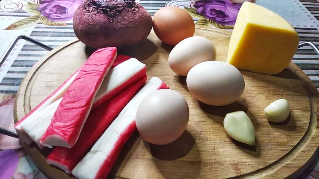 Завдяки вдалому поєднанню буряка, крабових паличок, сиру, яєць і часнику, салат виходить дуже смачним!