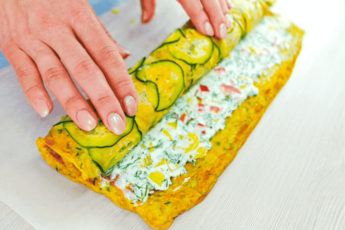 Останнім шостим завершальним шаром викладаємо тертий білок та розділимо.