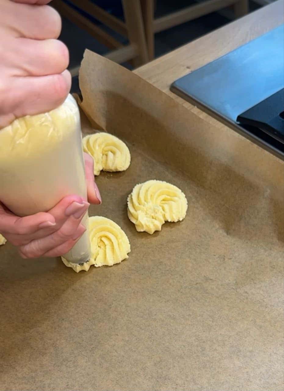 ▫️Переносимо тісто в кондитерський мішок із насадкою відкрита зірка.