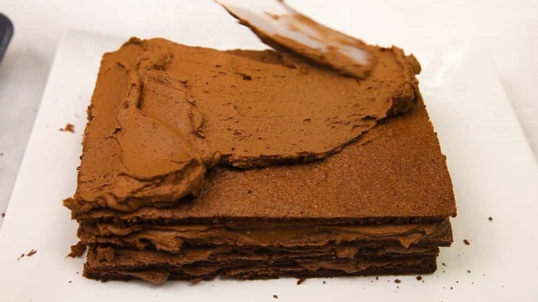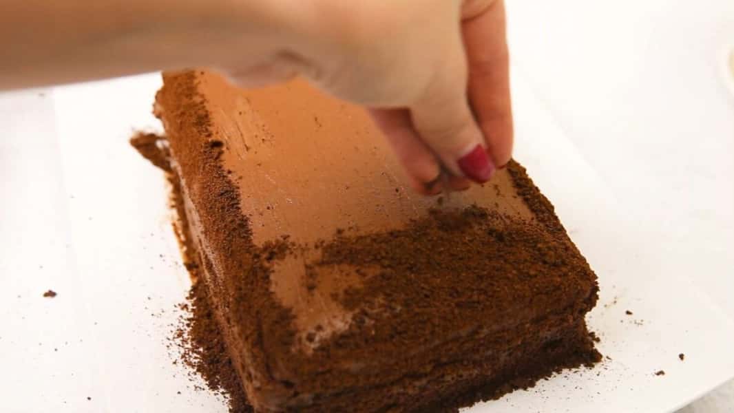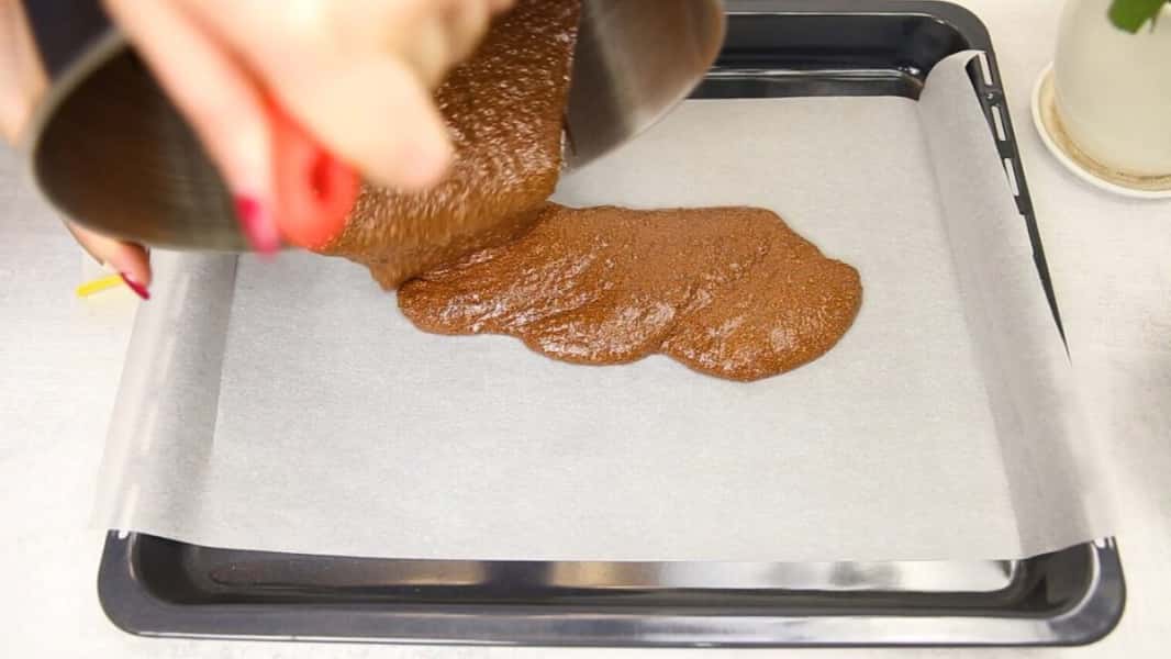 5. Після духовки дайте коржу охолонути. Зріжте нерівності по краях. Обрізки не викидайте – вони стануть у нагоді для обсипання торта. Якщо обрізки надто м’які – підсушіть їх у духовці чи мікрохвильовій печі, потім подрібніть блендером або качалкою.