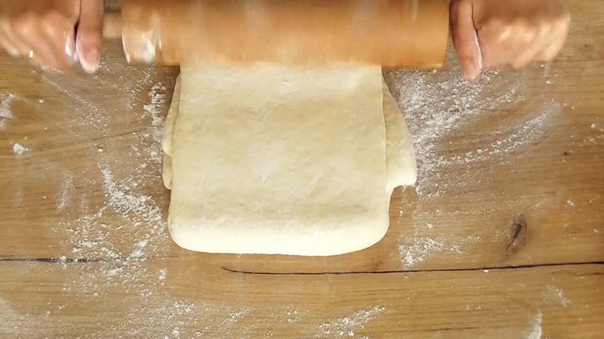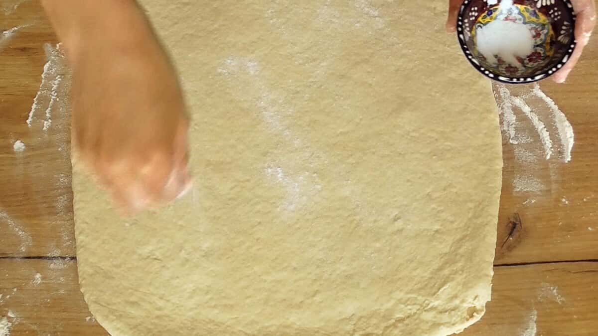 8. Скласти тісто конвертом і розкачати в останній раз.