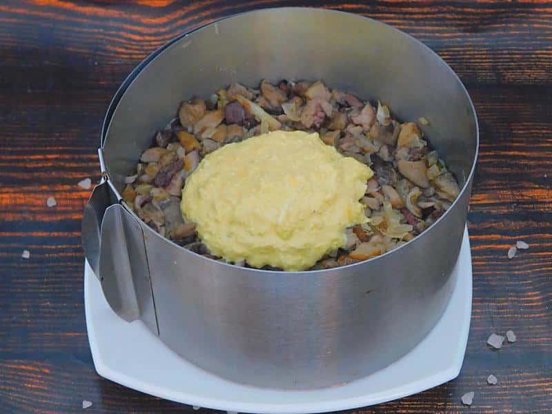 І останній компонент – обсмажені гриби та цибуля.