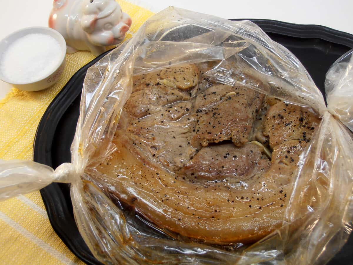 Свинина на кістки в рукаві, приготована в духовці – прекрасна заміна магазинній ковбасі. За смаком і виглядом вона дуже схожа на буженину, тільки з однією різницею: буженину зазвичай готують з безкісткового окісту, а ми будемо готувати її зі свинини на кістці. Таким способом страва стає набагато бюджетнішою. Готове м’ясо підійде і для бутербродів, і для ситного сніданку або перекусу.