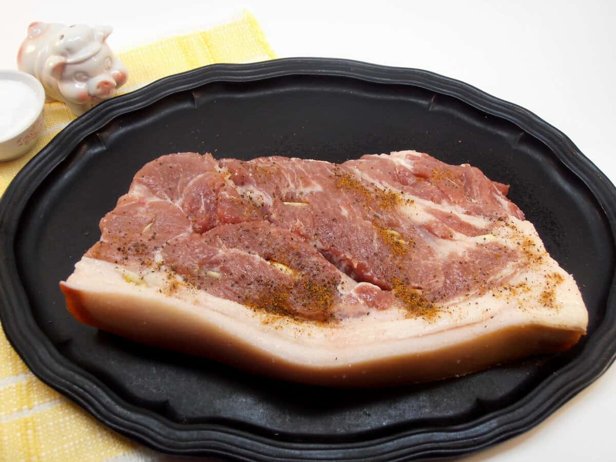 4. Тепер посипаємо рясно з усіх боків чорним меленим перцем. Краще брати свіжомелений, тоді аромат буде на багато яскравішим. За бажанням, можна додати червоний, він додасть гостроту страві. Його так само втираємо в свинину. У такому вигляді залишаємо шматок маринуватися 2 години. У холодильник ставити не треба. Який маринад ви використовуєте для свинини? Пишіть в коментарях!