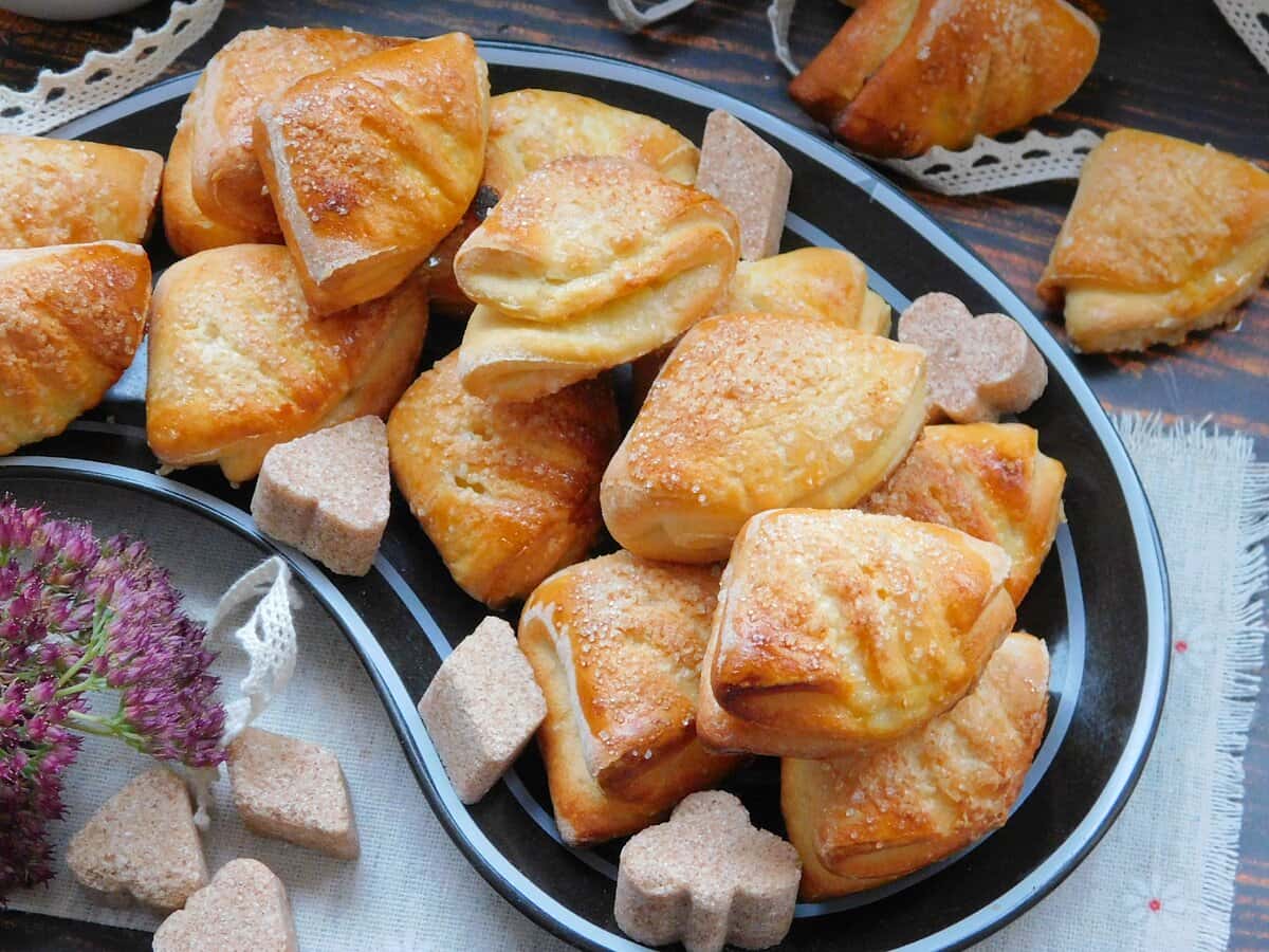 Багато хто пам’ятає гусячі лапки ще з дитинства – це дуже ароматне і ніжне печиво з сиру, яке за зовнішнім виглядом дійсно нагадує гусячу лапку. Тісто робиться зовсім без цукру, але при формуванні кожної лапки шари щедро пересипаються цукром, який при випічці перетворюється в солодкий сироп, ну а кристалики на поверхні приємно хрумтять.