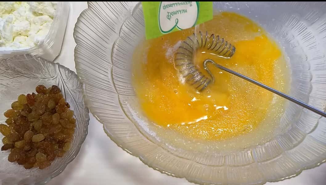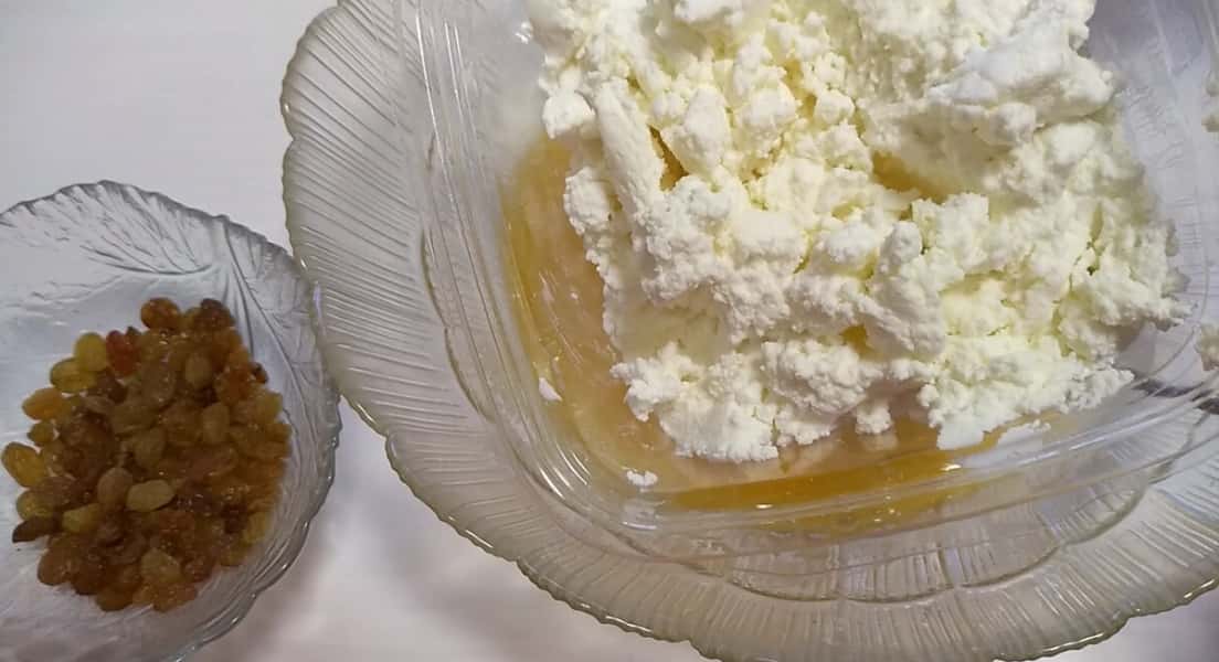 Всипаємо 30 г родзинок і місимо ще 1-2 хвилини.