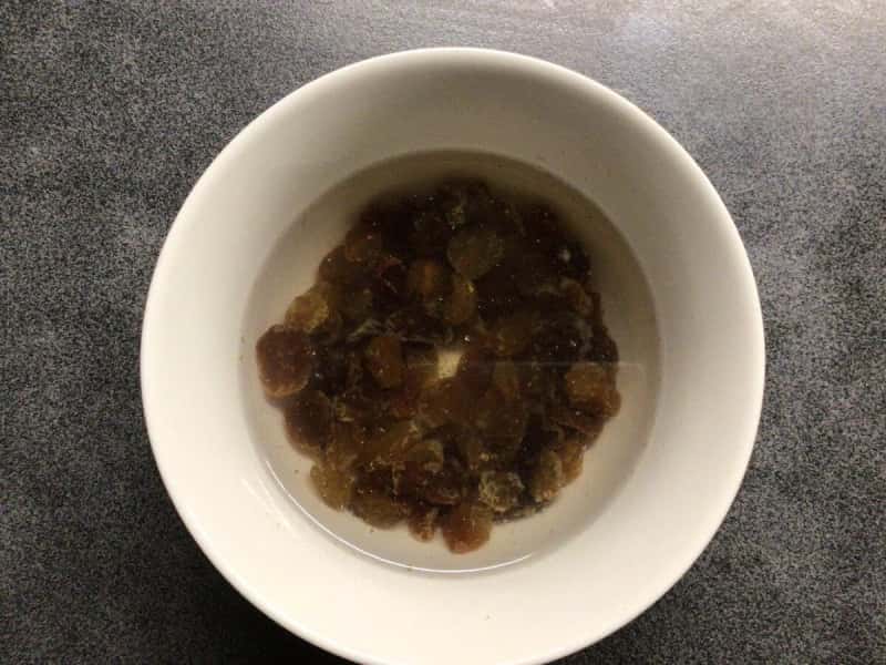 Родзинки у мене були трохи жорсткими, тому я їх добре помила і залила окропом на 10 хвилин.